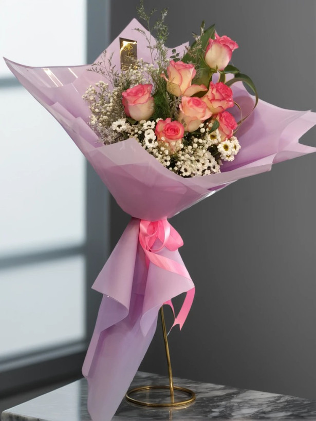 <meta name="description" content="✨ دسته گل رز ۷ شاخه صورتی لوکس با تزئین کرتنزیا و ژپسوفیلا، تحویل رایگان در ارومیه. هدیهای بینظیر برای عزیزانتان از بهترین گلفروشی آنلاین ارومیه (فلوریست ارومیا). سفارش آنلاین: floristurmia.com">
